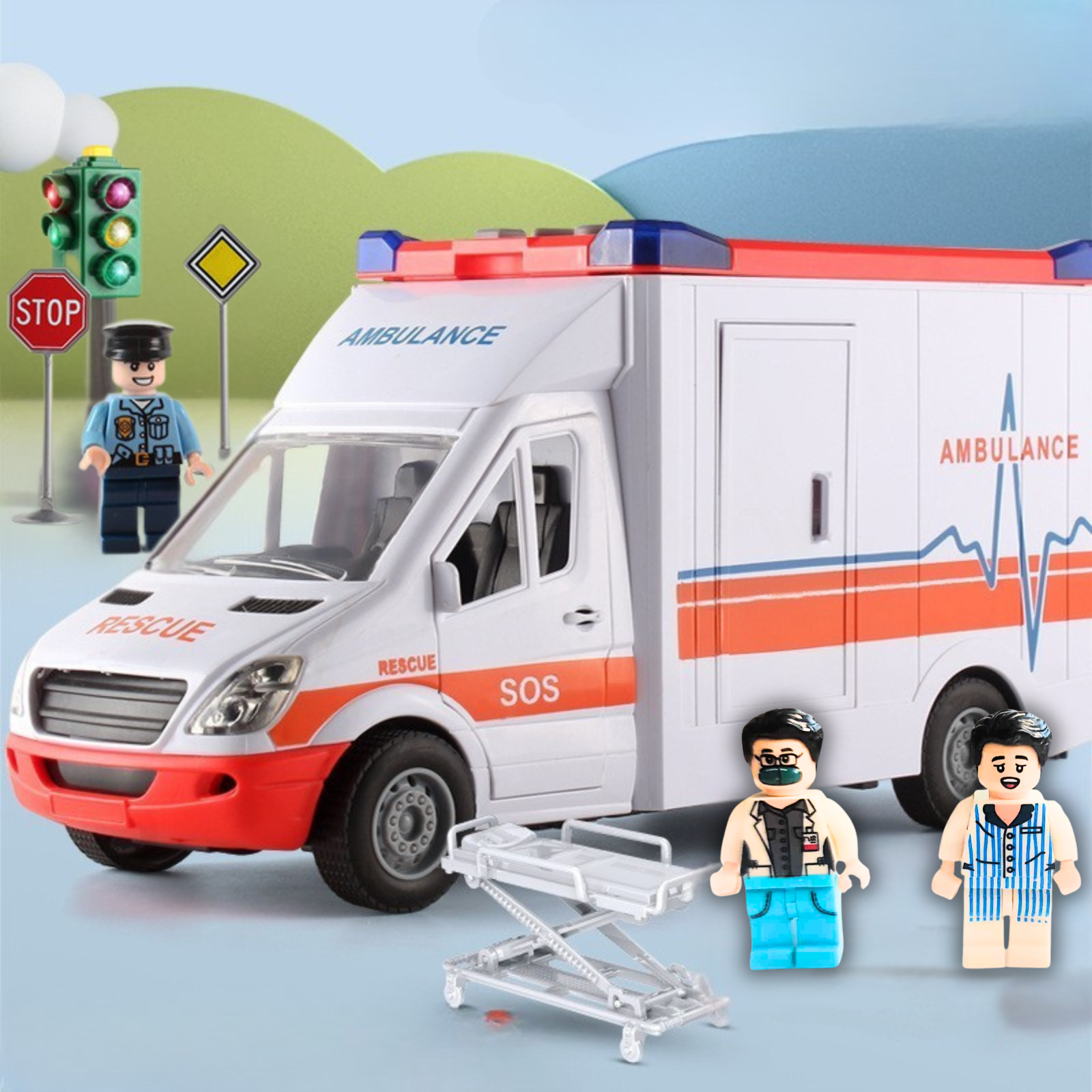 Ambulans karetka z efektami dźwięku i światła + figurki + znaki drogowe + interaktywny słup sygnalizacji