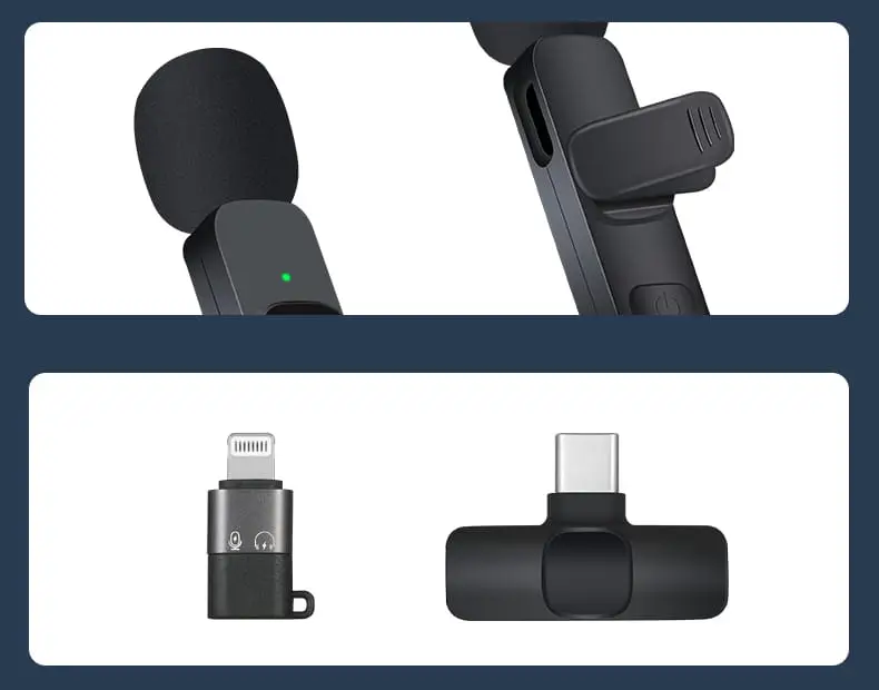Bezprzewodowy mikrofon krawatowy Android / iOS USB-C LIGHTNING