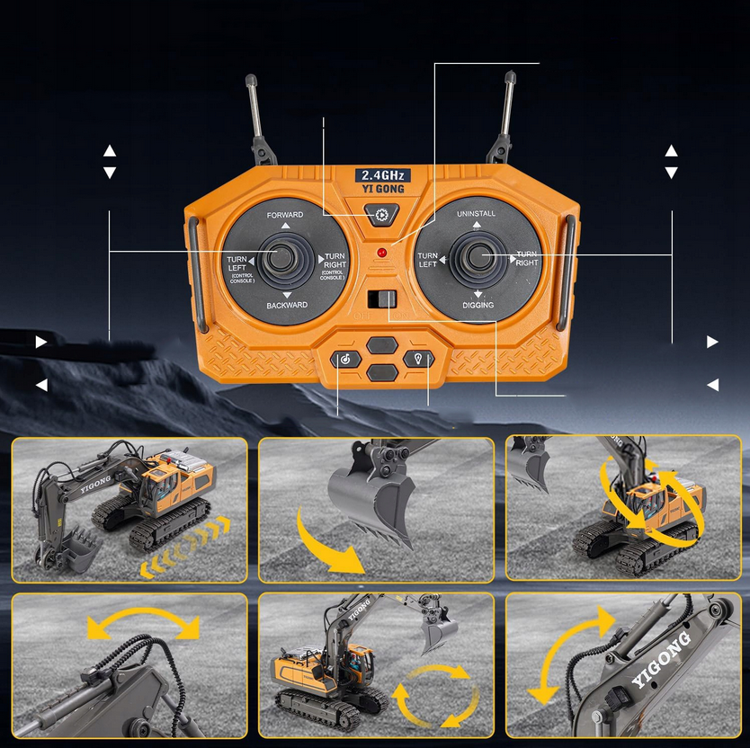 KOPARKA RC ZDALNIE STEROWANA 2.4GHz 360° RUCHOMA ŁYŻKA 2x AKUMULATOR 11CH