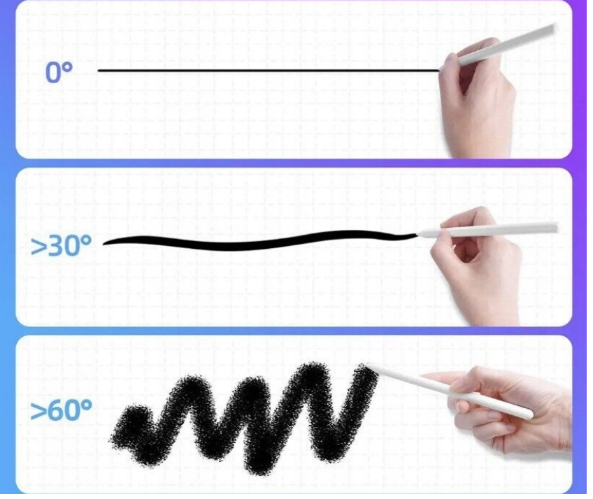Rysowanie jak prawdziwym ołówkiem, dzięki wbudowanemu systemowi czujników przechyłu, który dostosowuje grubość linii i kąt, tak jakbyś pisał prawdziwym ołówkiem.