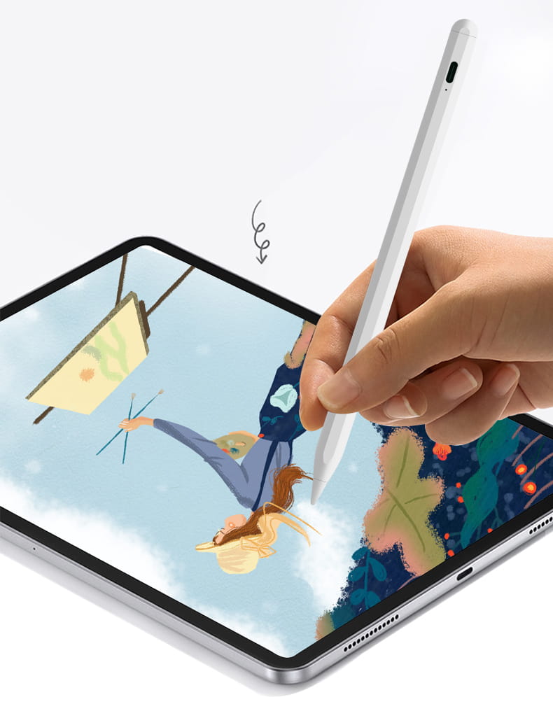 STYLUS PENCIL 766 to inteligentny rysik dotykowy, który doskonale sprawdza się w przypadku posiadaczy iPada Pro/Air/Mini, oferując im więcej opcji. Ten rysik wyposażony w funkcję Palm Rejection umożliwia użytkownikom swobodne oparcie dłoni na ekranie, a za pomocą funkcji Tilt i Pressure Detection precyzyjnie odwzorowuje zachowanie prawdziwego ołówka na ekranie, co sprawia, że praca z tabletem jest jeszcze bardziej naturalna. Działanie rysika jest bardzo proste i podobne do prawdziwego ołówka, gdzie system czujników przechyłu na bieżąco dostosowuje grubość linii oraz jej kąt na ekranie.
